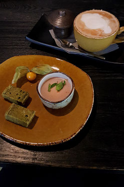 (煎茶) bis hin zum edlen Koicha (濃茶), gibt es alles, was mein Grüntee-Herz höher schlagen lässt. Da es an diesem Nachmittag ziemlich voll war, habe ich mich für einen Matcha-Latte mit Mandelmilch entschlossen. Wer etwas mehr Zeit mitbringt, kann auch an Veranstaltungen im Tatami-Raum teilnehmen.