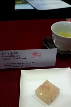 Zu jedem Sencha gab es eine kleine, japanische Süßigkeit sakura kohakuto, welche vom Cafe Letcha zubereitet wurde.