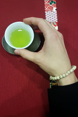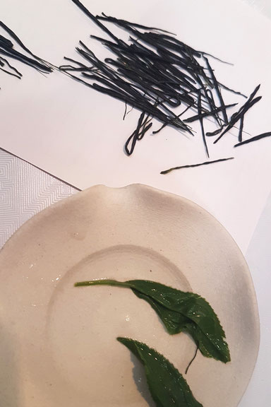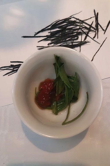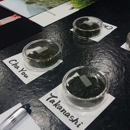 Wusstet ihr, dass man Teeblätter (von guter Qualität) nach dem Aufguss essen kann? Auf der Messe habe ich sie mit Ponzu-Gelee (ポン酢) serviert bekommen. Vom Geschmack her, kann man die Blätter mit dem von Rucola vergleichen - nur das Teeblätter viel besser schmecken!