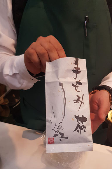 Temomi (手揉み ) bezeichnet man einen handgerollten Tee, welcher nur für besondere Anlässe und Wettbewerbe hergestellt wird. In dieser Kategorie hat Takanashi Jr. schon viele Auszeichnungen bekommen und ist landesweit für seinen Temomi-Cha bekannt. Wie hochwertig dieser Tee ist, konnte man allein schon an der Verpackung sehen.