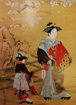 Des Weiteren kam es am Hof der Edo-Zeit in Mode, Farben nach den Jahreszeiten zu tragen. Die Kimonos von den dortigen Hofdamen orientierten sich an den naturgegeben Farben, wie zum Beispiel an dem zarten Rosa der Kirschblüte im Frühling.